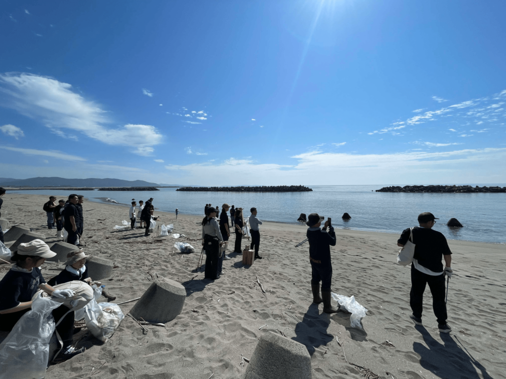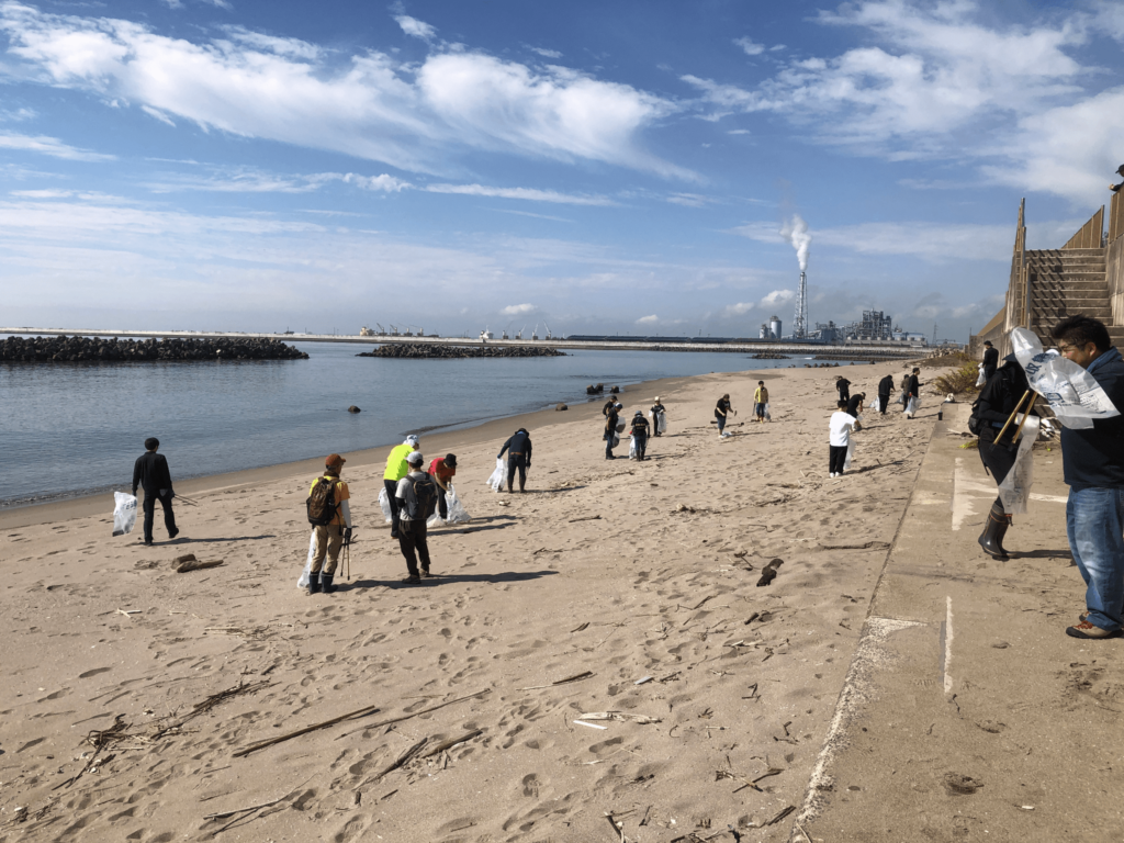 大きな工場ときれいな海を眺めながらみんなで少しずつ拾っていきます!!!