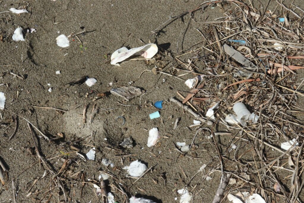 一見綺麗に見える砂浜も近くで見ると小さなごみでいっぱいです。