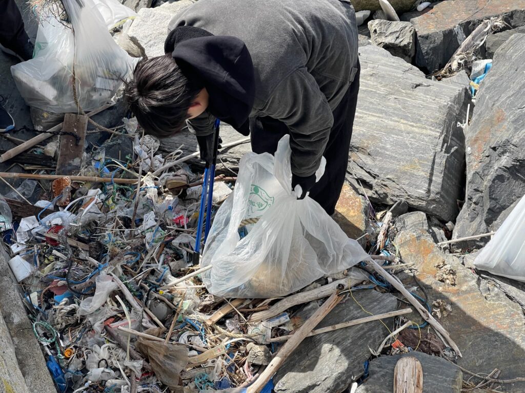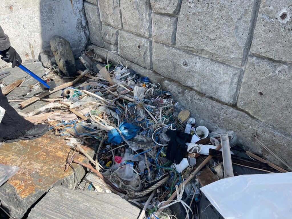 ここの角は波で運ばれてきたごみが溜まりやすい場所です。