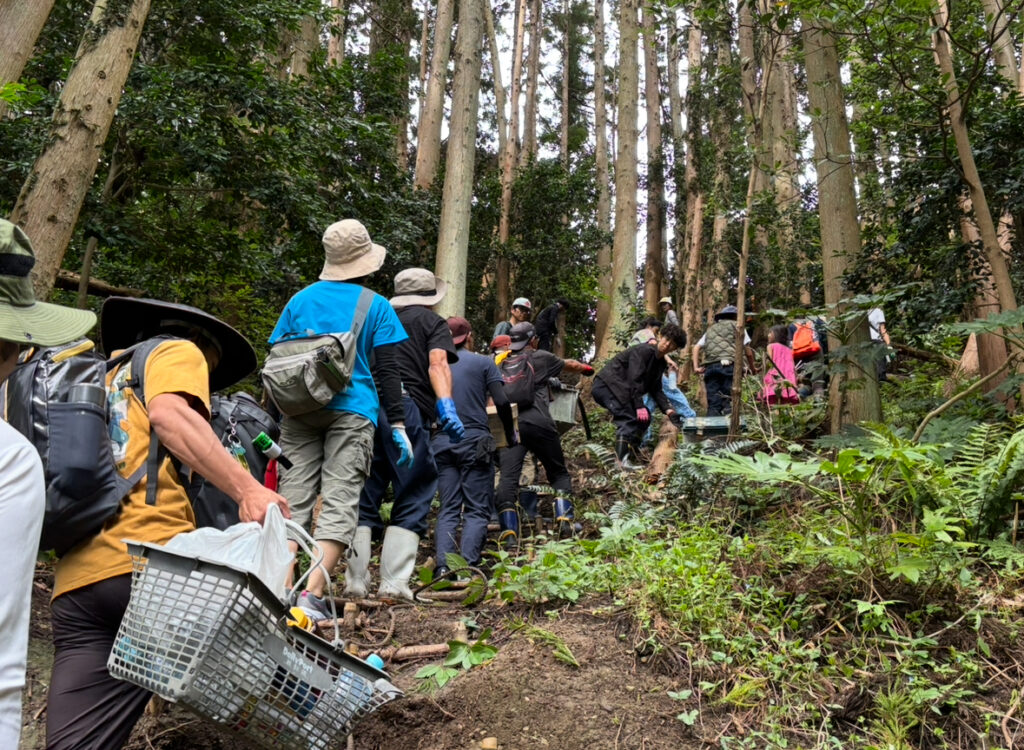 いやーしかし人が多い!足元悪い中ありがとうございます。出島プロジェクト,島民,地域おこし協力隊でつくった階段,大活躍です。