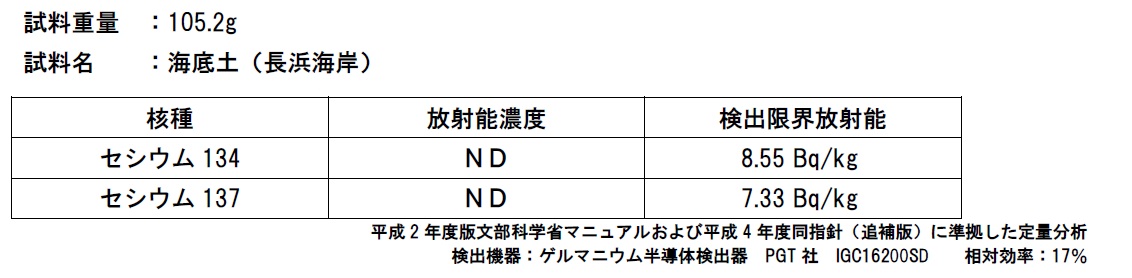 ※空間線量は、長浜海岸砂浜にて地表より1m地点で測定しています。